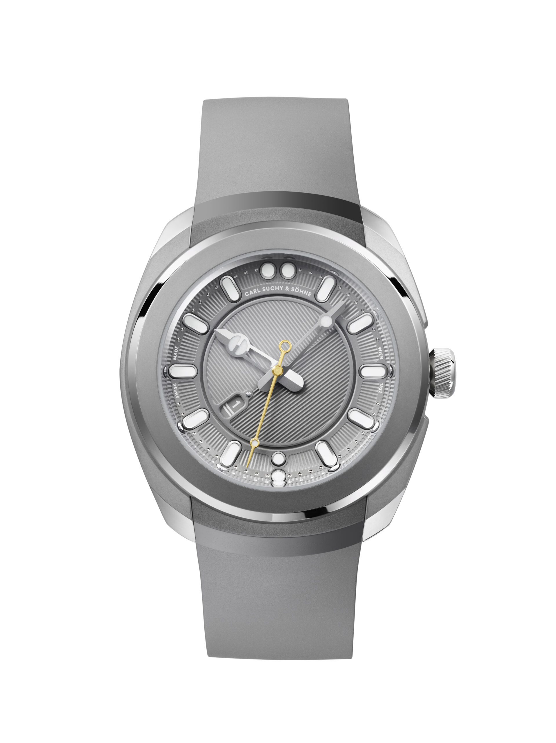 | Attributes | MOUVEMENT<br>Mouvement : automatique, réserve de marche de 42 heures, 28.800 vph, 21 rubis, CSS201 (modifié Dubois Dépraz DD90010)<br>Anneau du mouvement décoré et plaqué or, protégé derrière un verre<br>Fréquence : 4 Hz – 28.800 A/h<br>Réserve de marche : 42 heures<br>21 rubis<br>INDICATIONS<br>Heure, minute et trotteuse centrale<br>CADRAN<br>Fenêtre de date mobile<br>Aiguilles Dauphine squelettées, rhodiées avec remplissage en SuperLumiNova<br>Cadran laqué décoré avec bride concave intégrée<br>Index concaves rhodiés avec remplissage en SuperLumiNova<br>Trotteuse dorée<br>BOÎTIER<br>Matériau : Titane ; lunette, cornes et fond de boîtier polis<br>Diamètre : 40,8 mm<br>Corne à corne : 43,9 mm<br>Hauteur : 12,2 mm<br>Étanchéité : 10 ATM / 100 mètres<br>Couronne vissée avec remplissage en laque noire<br>Verre saphir bombé avec traitement antireflet des deux côtés ; fond de boîtier pressé avec anneau du mouvement décoré et plaqué or protégé derrière un verre<br>Numéro de série gravé<br>BRACELET<br>Bracelet en caoutchouc de 22 mm x 20 mm avec barrettes à ressort à dégagement rapide<br>Circonférence du bracelet en caoutchouc : de 140 mm à 190 mm<br>Jardin de Belvédère micro-gravé à l'intérieur<br>FERMOIR<br>Boucle déployante en titane avec verrou de sécurité<br>SWISS MADE<br>La montre est livrée dans un coffret en velours de haute qualité et un étui de voyage en cuir véritable, fabriqué à la main à Vienne. |